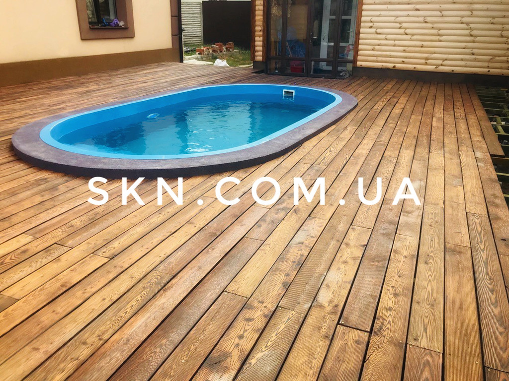 Существует множество вариантов обработки дерева и в данной работе Вы можете увидеть как выглядит обожженная доска, а затем еще слегка затонирована террасным маслом. Использовалась доска террасная вельвет из сибирской лиственницы, масло Bionic House.